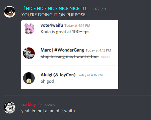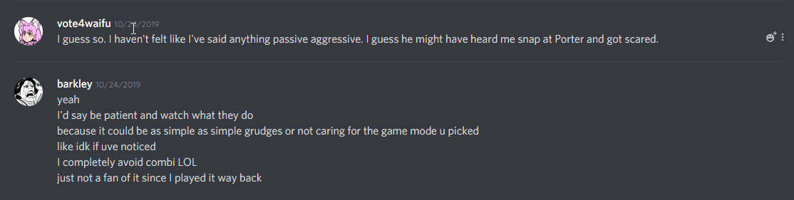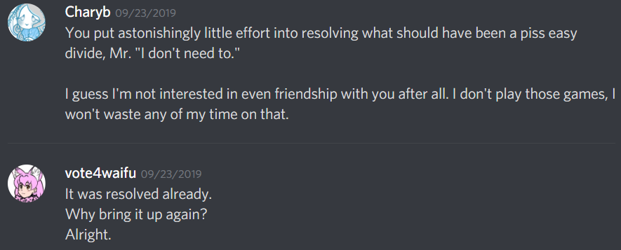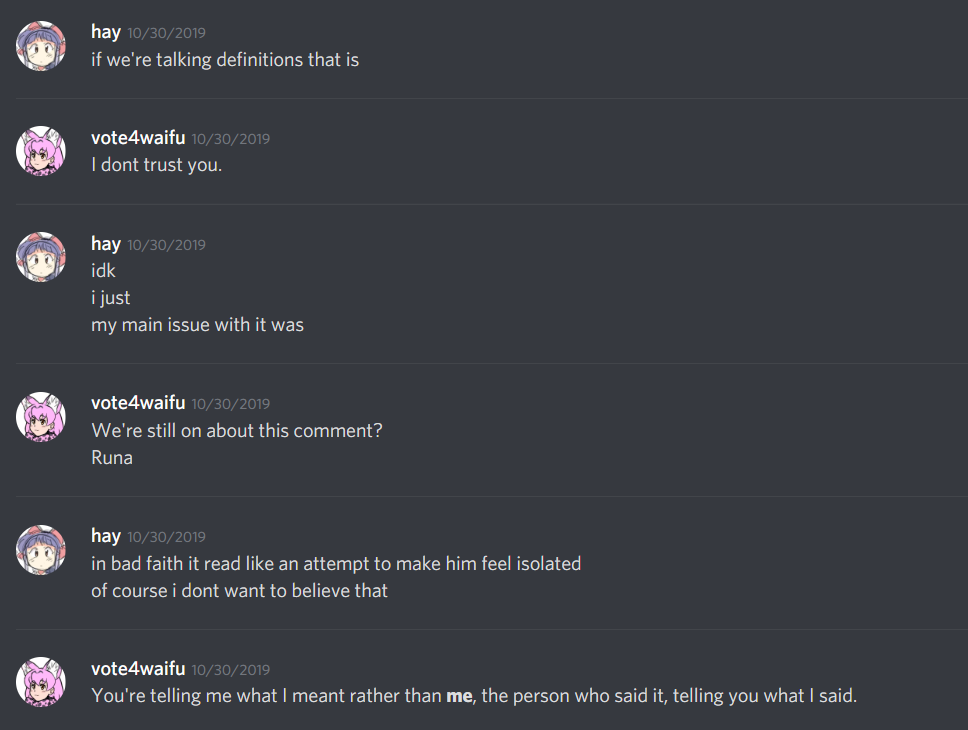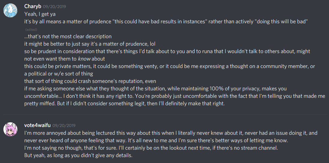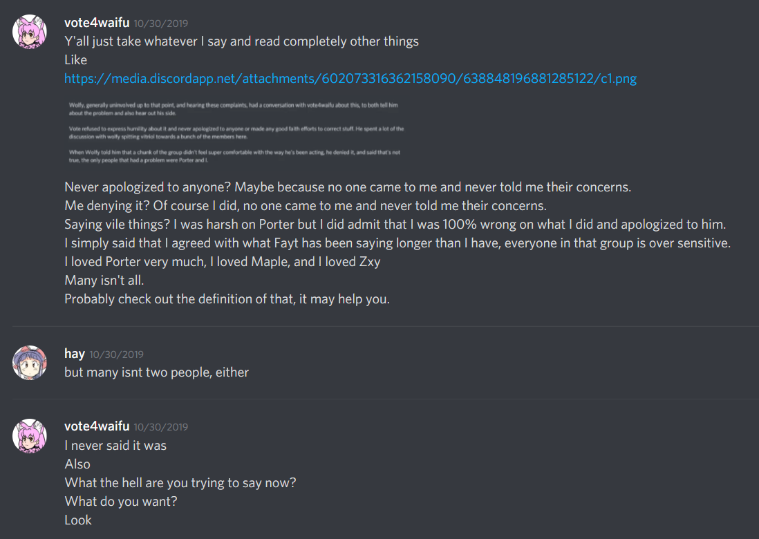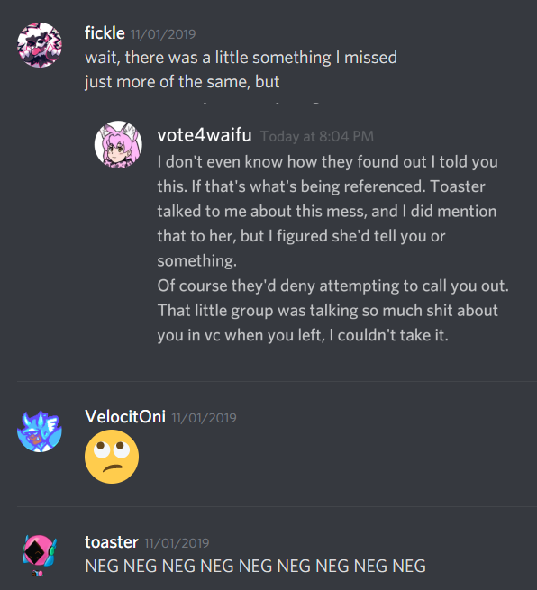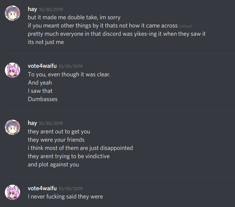 On top of what Wolfy told me, seeing this behavior in particular from Waifu really rubbed me the wrong way, so I decided to confront them about it.