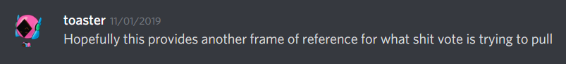 Vote decided not to honor us with a response to any of the points raised. He instead decided to confront Porter privately in voice (despite being completely resistant to his text confrontation the first time) with a friend to back him up. Said friend tried to act as a mediator, but due to being fed false information by Vote, could not fulfill this role. Vote decided to repeat the same list of shit that got him into this situation: lies, denial, deflection, and blaming others.