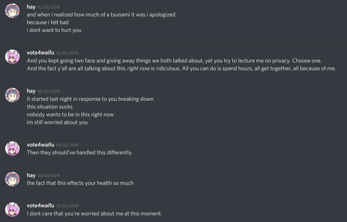 Things eventually came to a head on October 30th, the day of Waifu's last stream.